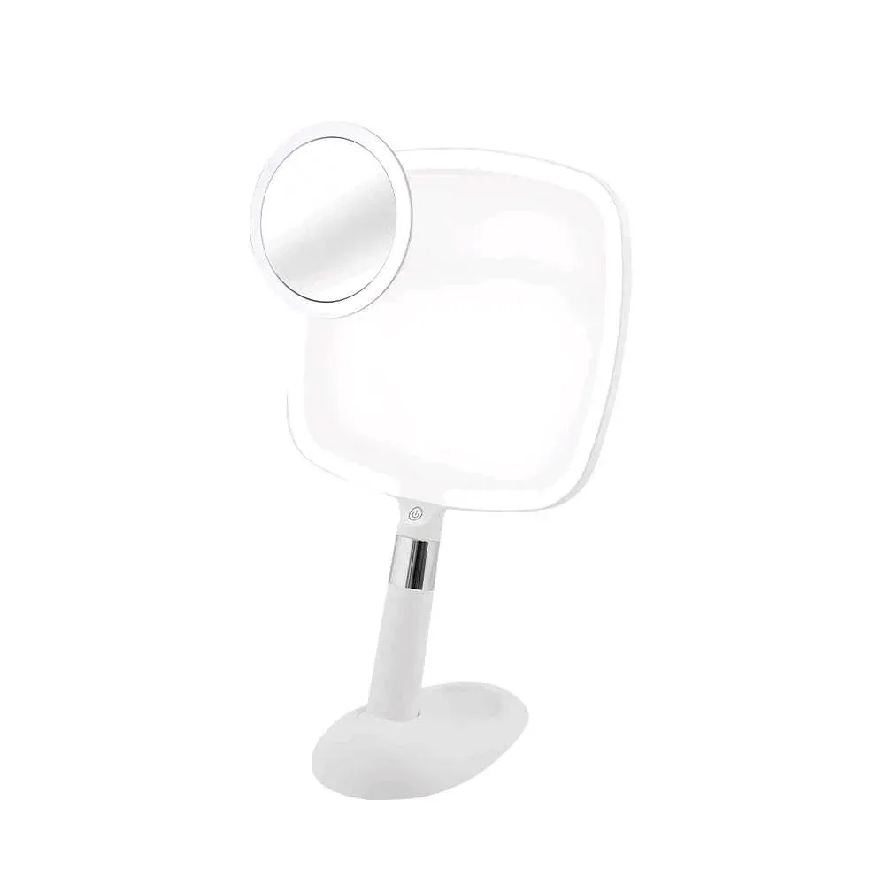Espejo de mano PREMIUM con aro de luz LED, amplificador magnético10x, base, batería litio y USB-C. VEESLIDE