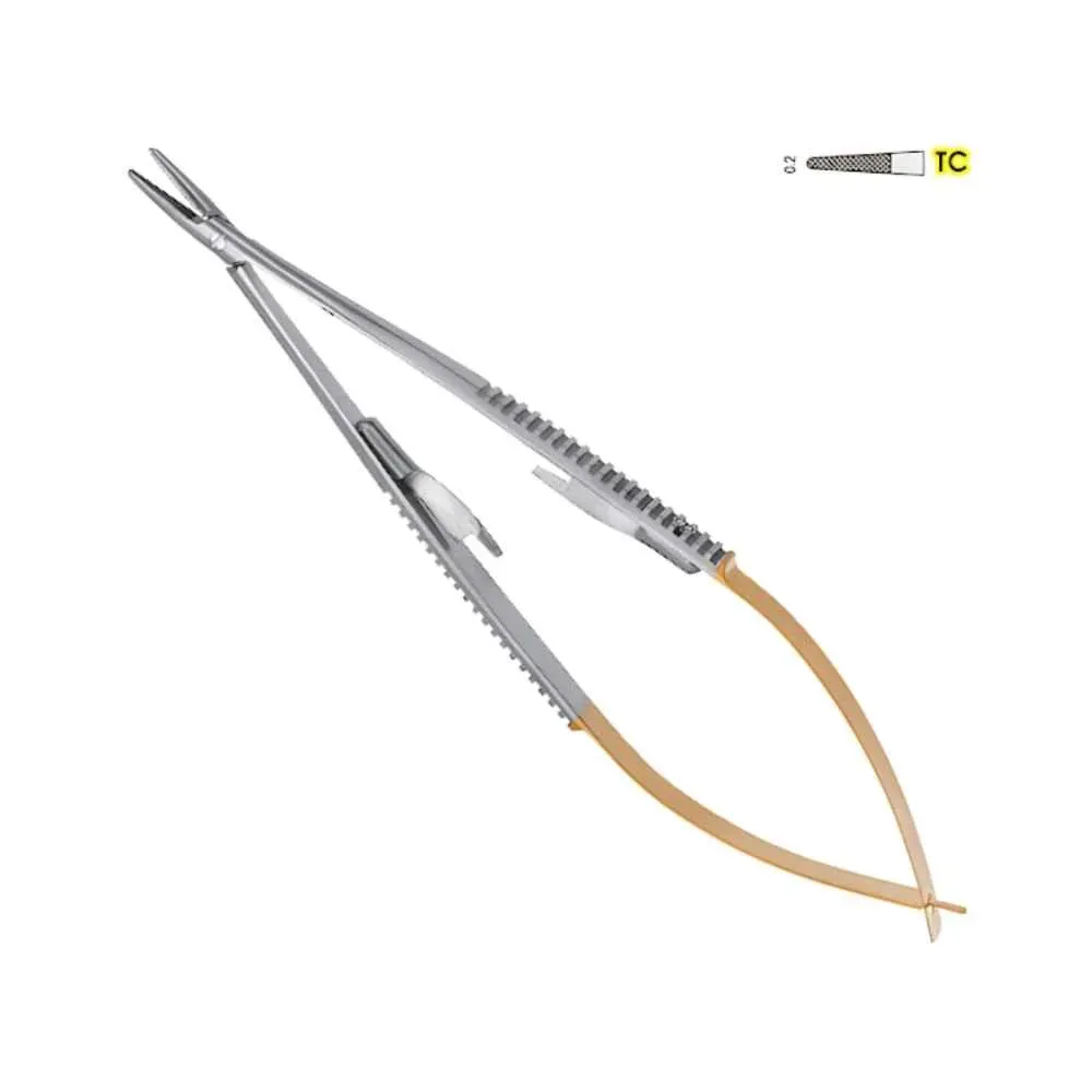 Porta agujas Castro Viejo recto, punta fina ranurada de TC (carburo de tungsteno), 14 cm. ROCKMED (MDS.25.02)