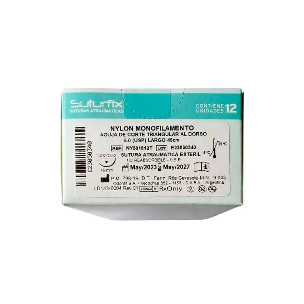 Aguja de sutura con hilo de nylon monofilamento 4/0, atraumatica, x1 u. SUTURFIX