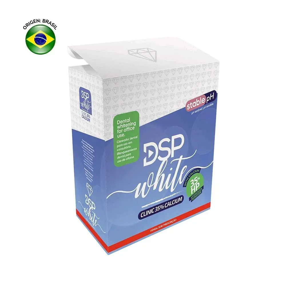 DSP White Clinic 35% - Calcium es un sistema de blanqueamiento dental profesional a base de Peróxido de Hidrógeno al 35%. Diseñado para el blanqueo de dientes vitales, este si...