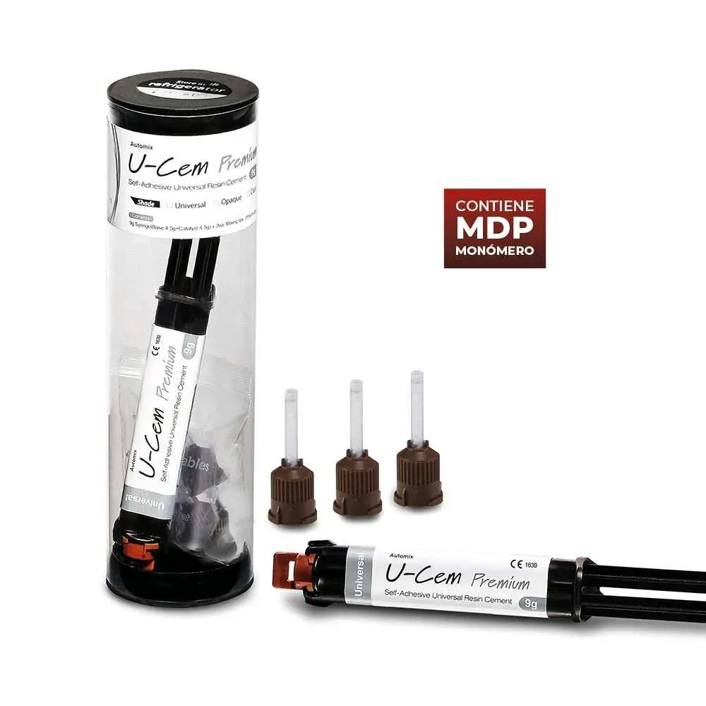 U-Cem Premium redefine la cementación dental con su fórmula avanzada de curado dual y su capacidad para adherirse a una amplia gama de prótesis sin necesidad de tratamiento previo. Este material, que incluye MONÓMERO MDP, ofrece una adhesión sólida y duradera en superficies de zirconio, metal, resin...