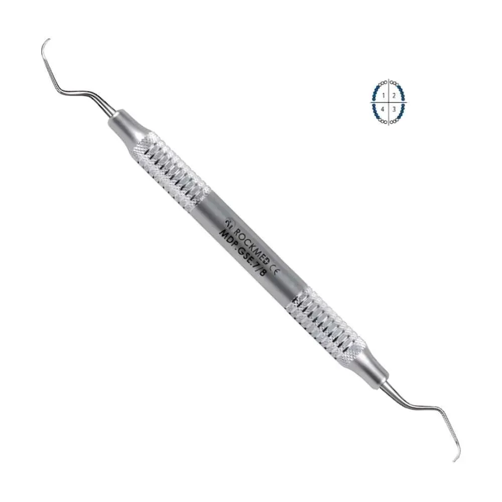 La cureta Gracey de mango metálico ROCKMED está diseñada para la eliminación precisa de cálculo y placa subgingival en áreas específicas de la dentición. Fabricada íntegramen...
