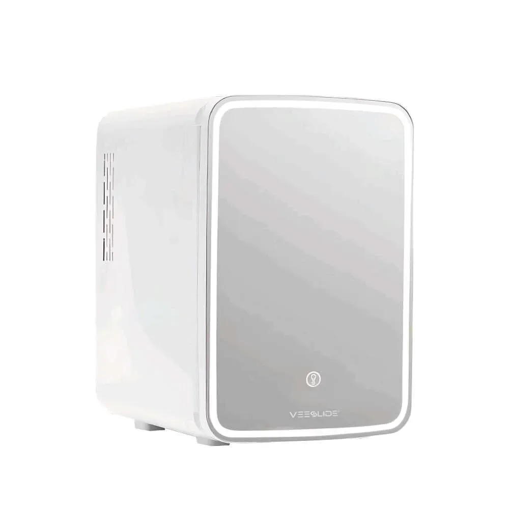 Heladerita 10lts. Frío/Calor, con espejo y aro de luz LED, conexión a 220v y 12V para auto (portátil). VEESLIDE