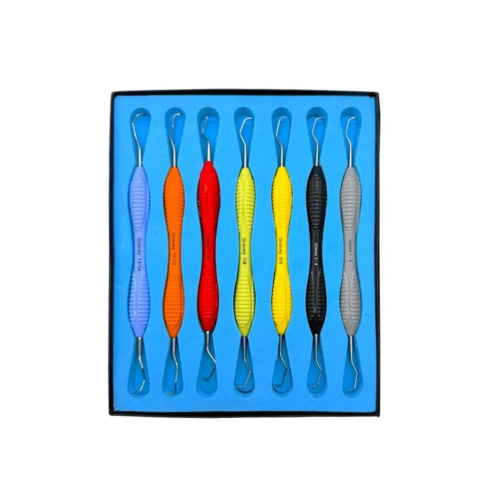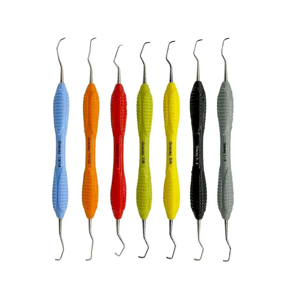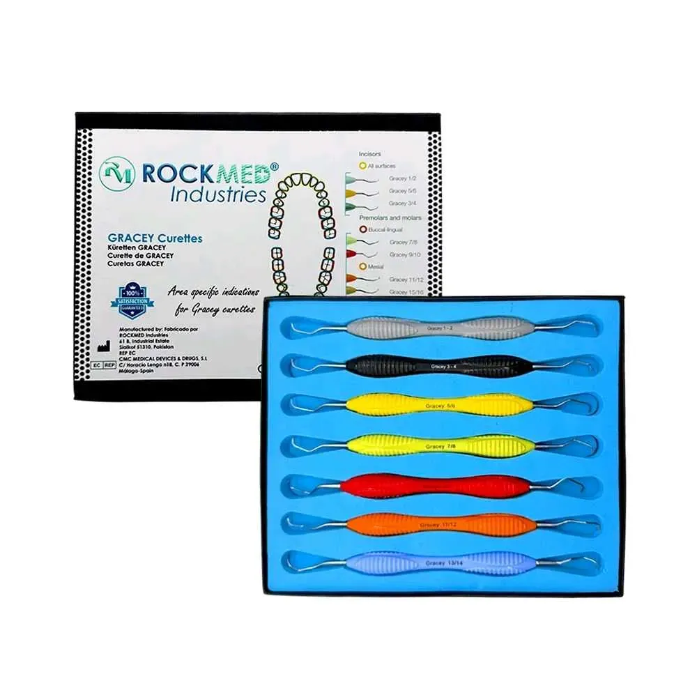 Kit de curetas Gracey con mango ergonómico de silicona, x7 u. ROCKMED (MDD.ER031X)