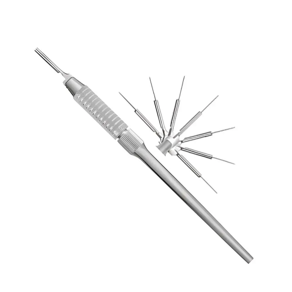 El Mango de Bisturí Ajustable de ROCKMED está diseñado para ofrecer máxima versatilidad en cirugía oral y periodontal, permitiendo adaptar el ángulo de la hoja a las necesidades clínicas.