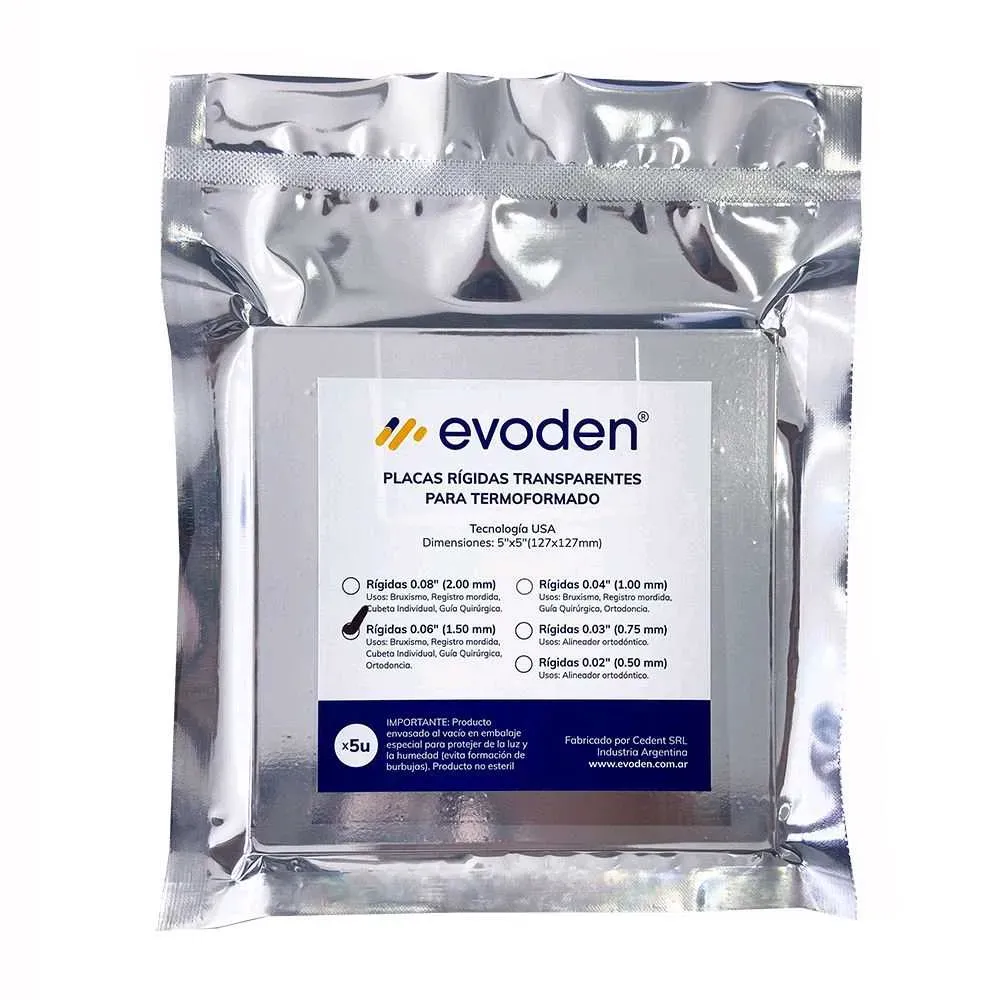 Placas Cuadradas Rígidas para termoformado 0.06", (127x127mm) x 5u. EVODEN