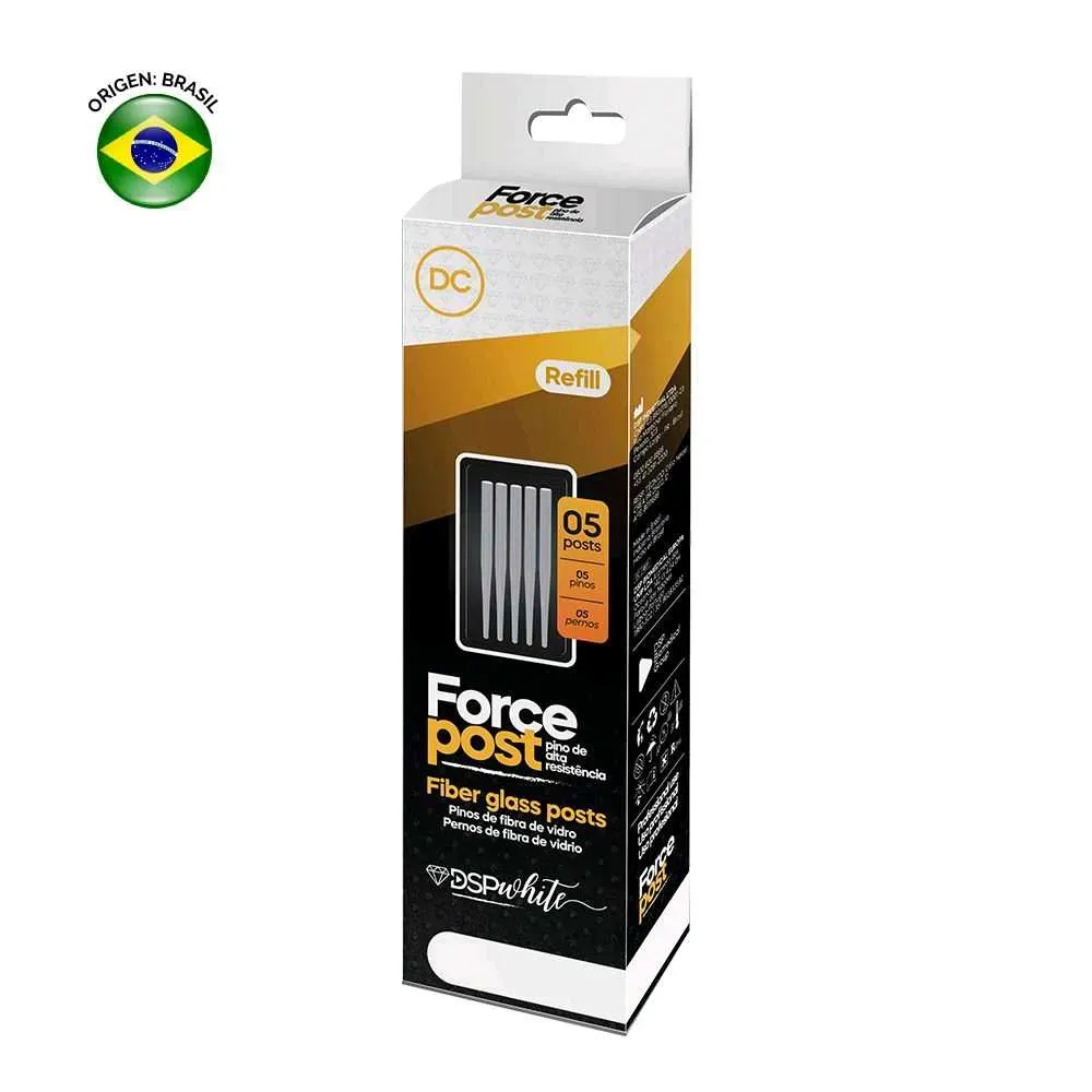 DSP ForcePost es un poste intrarradicular fabricado en composite de FIBRA DE VIDRIO Y RESINA EPOXI, diseñado para proporcionar soporte y refuerzo a dientes tratados endodónticamente. Dis...