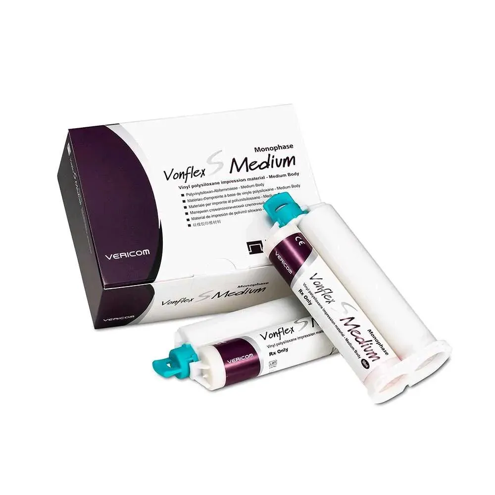 Silicona liviana por adición Vonflex S MEDIUM (Regular), 2 cartuchos 50ml + puntas. VERICOM