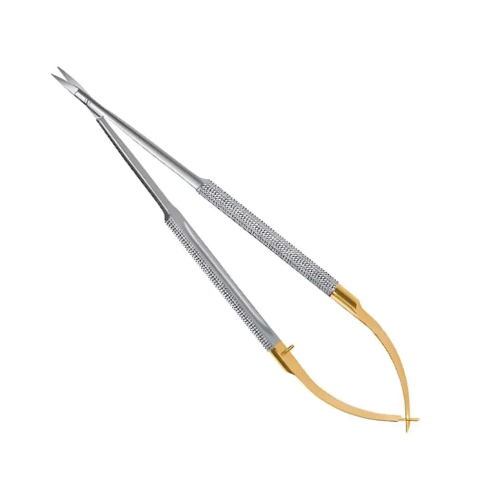 La Tijera Recta de Acción por Resorte de ROCKMED está diseñada para el corte de tejidos finos y material de sutura en procedimientos microquirúrgicos y periodontales.
